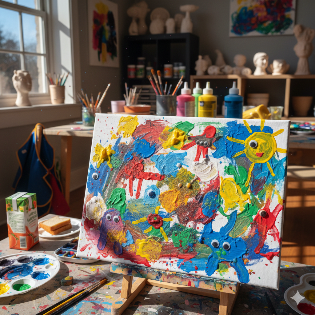 While we work with non-toxic art supplies, some materials may leave a lasting mark. We recommend dressing children in clothing that allows for full movement and welcomes a bit of creative wear-and-tear. A dedicated art smock or well-loved playwear is ideal for this joyful, hands-on environment.